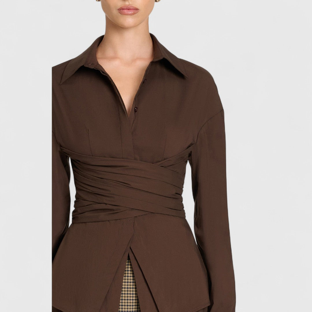 • Κόψιμο: Ελαφρώς εφαρμόζεται με εφέ τύλιγμα για κολακευτική γραμμή.