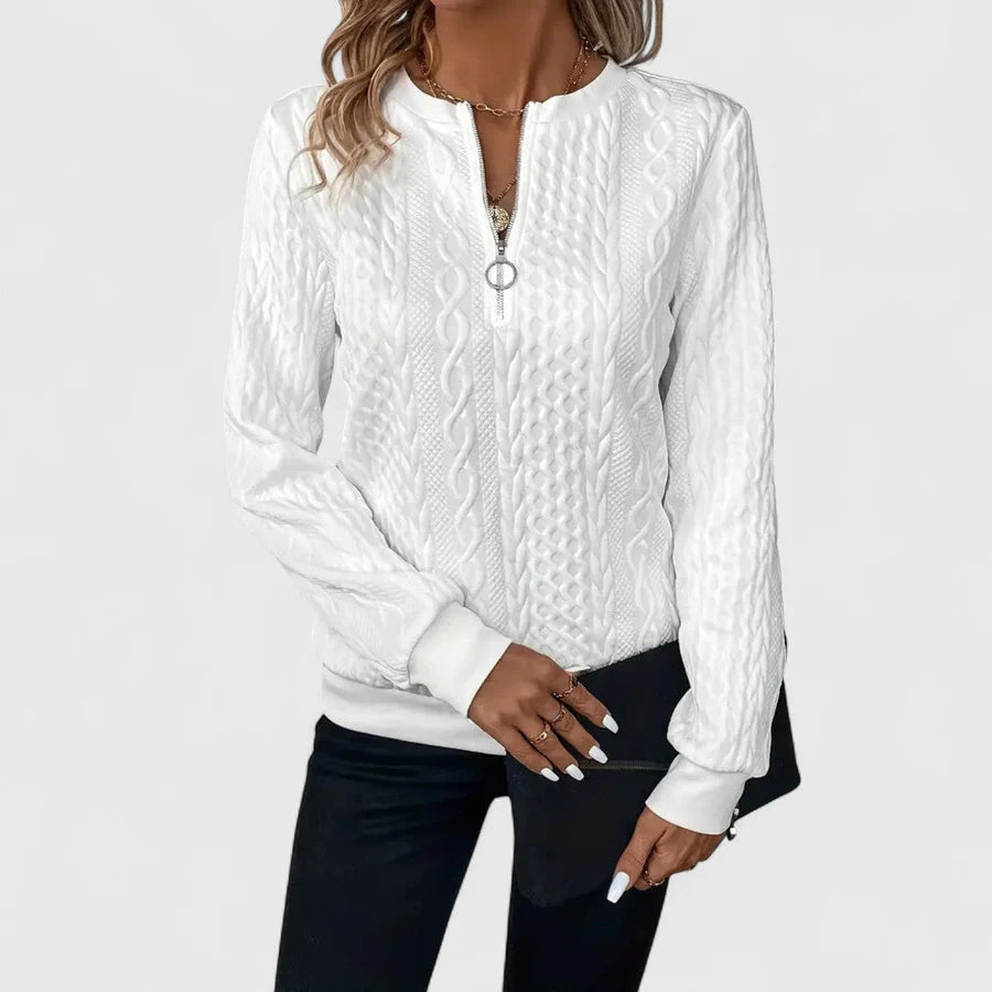 Η Παγώνα - Γυναικεία ζακέτα με φερμουάρ και πλέξη καλωδίου, συνδυάζει ζεστασιά και κομψότητα για καθημερινές εμφανίσεις με άνεση. Ιδανική για casual look, προσφέρει αβίαστη φινέτσα από το πρωί μέχρι το βράδυ.