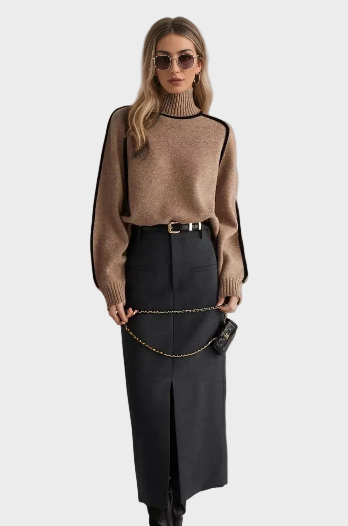 Το κομψό πλεκτό πουλόβερ με αντίθεση