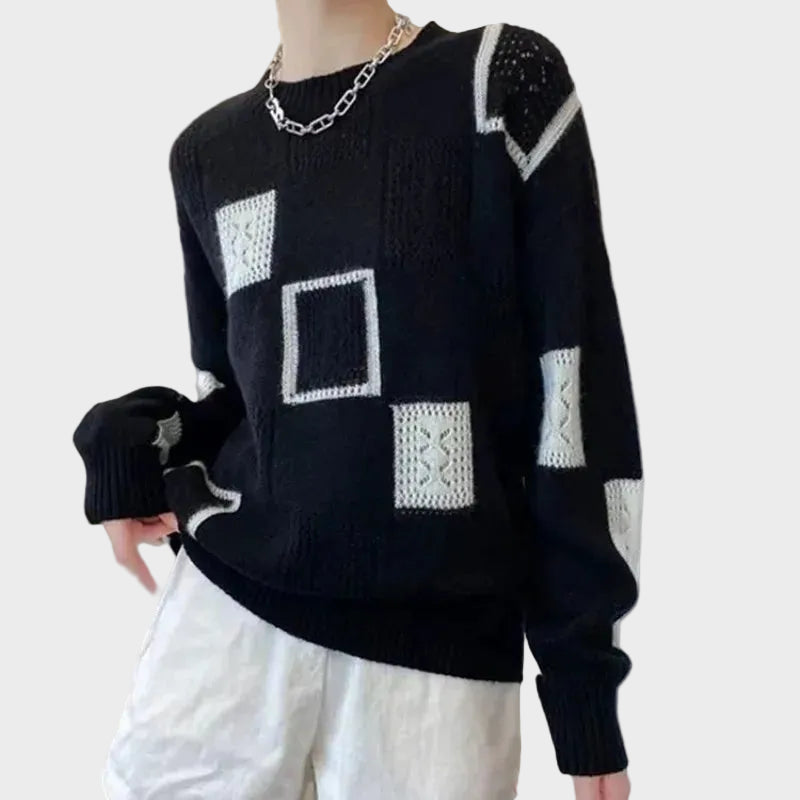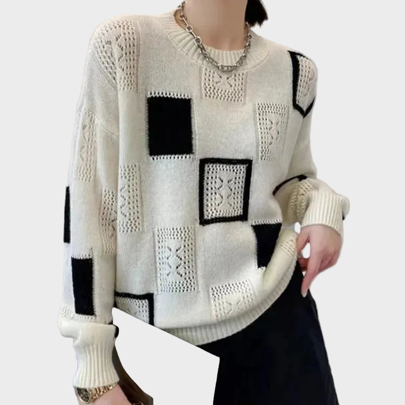 Κατερίνα - Πλεκτό πουλόβερ με καρό μοτίβο και ανοιχτή πλέξη