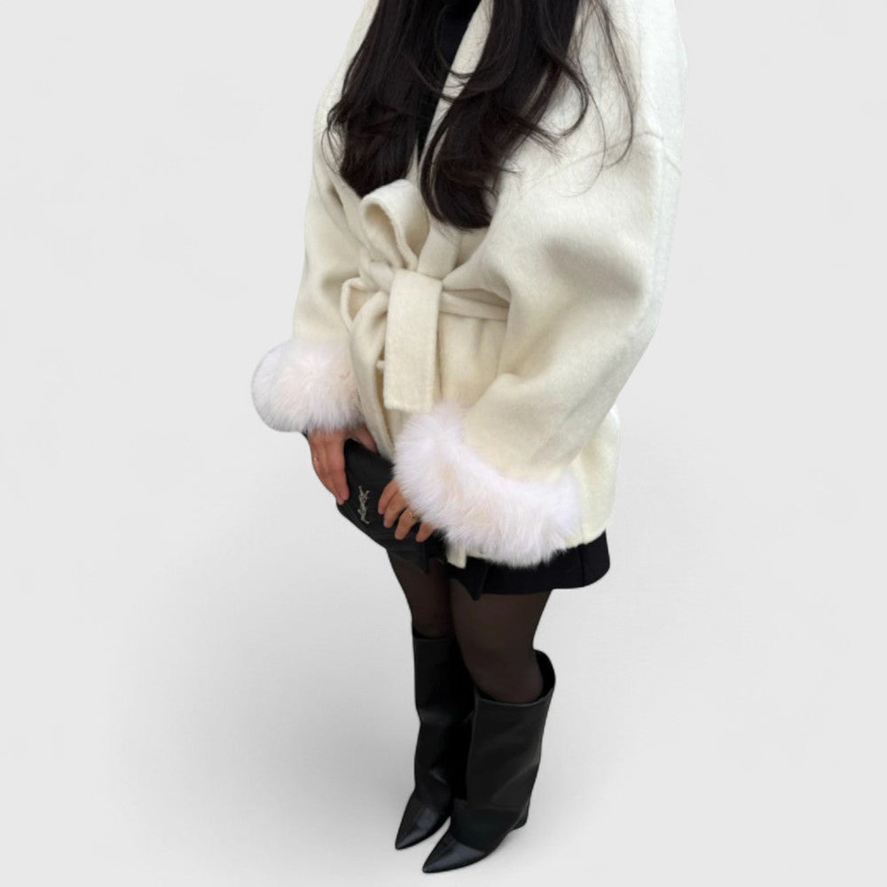 Ανθή - Κομψό παλτό με λεπτομέρειες από οικολογική γούνα