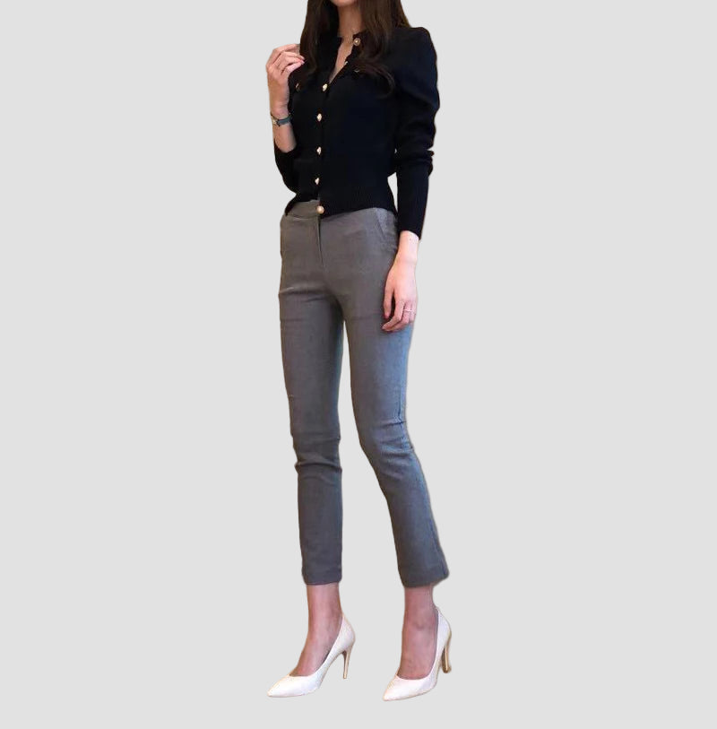 • Silhueta Curta e Moderna: O corte curto ( cropped ) e ajustado é extremamente moderno e ideal para usar com calças de cintura alta ou saias, criando uma silhueta lisonjeira e definida.