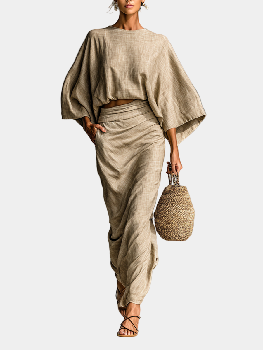 Σετ δύο τεμαχίων: φαρδύ τοπ και μακρύ φούστα που ταιριάζει.