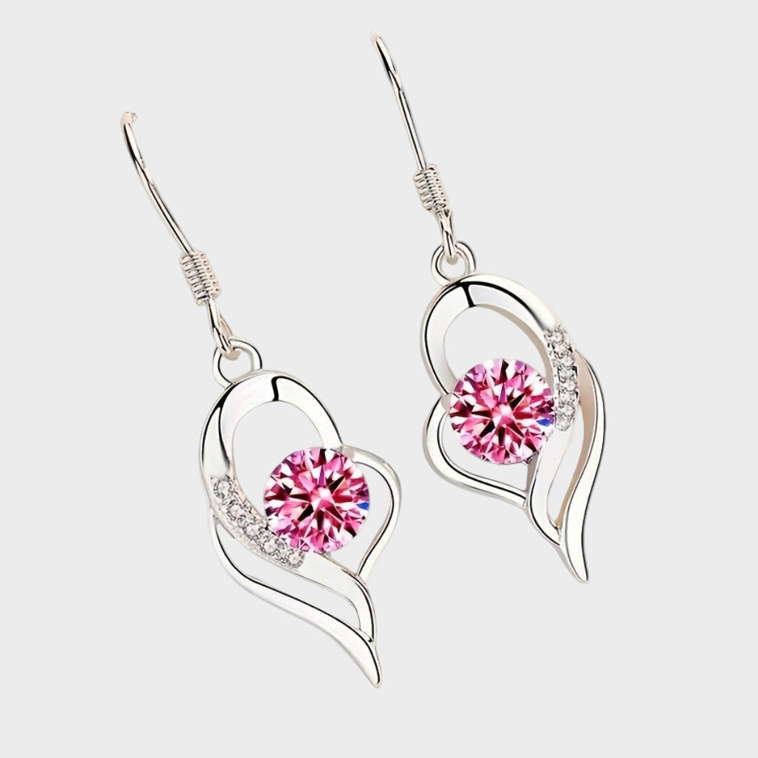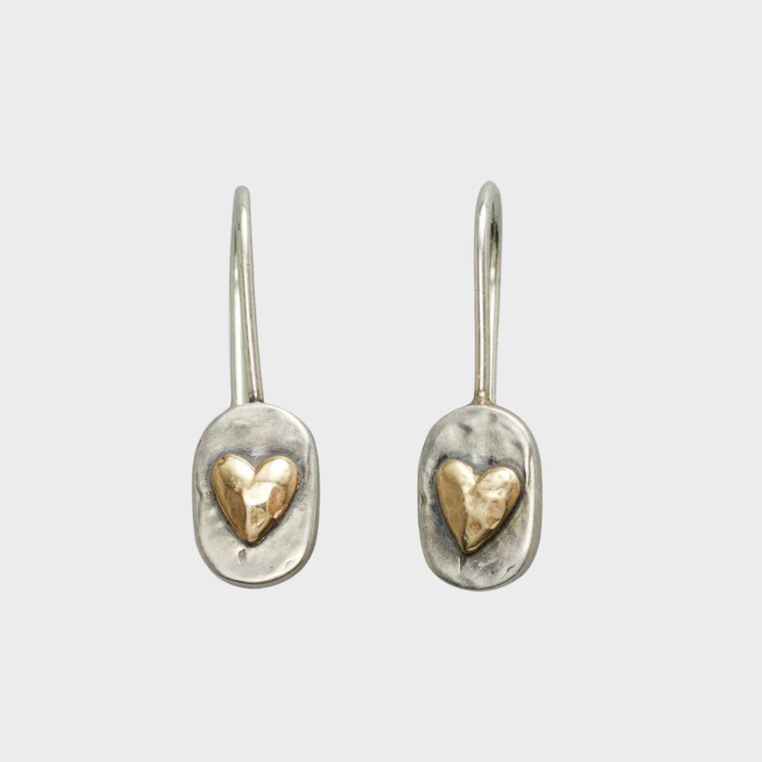Δωροθέα - Σκουλαρίκια καρδιάς σε ασήμι και χρυσό με διακριτική λάμψη