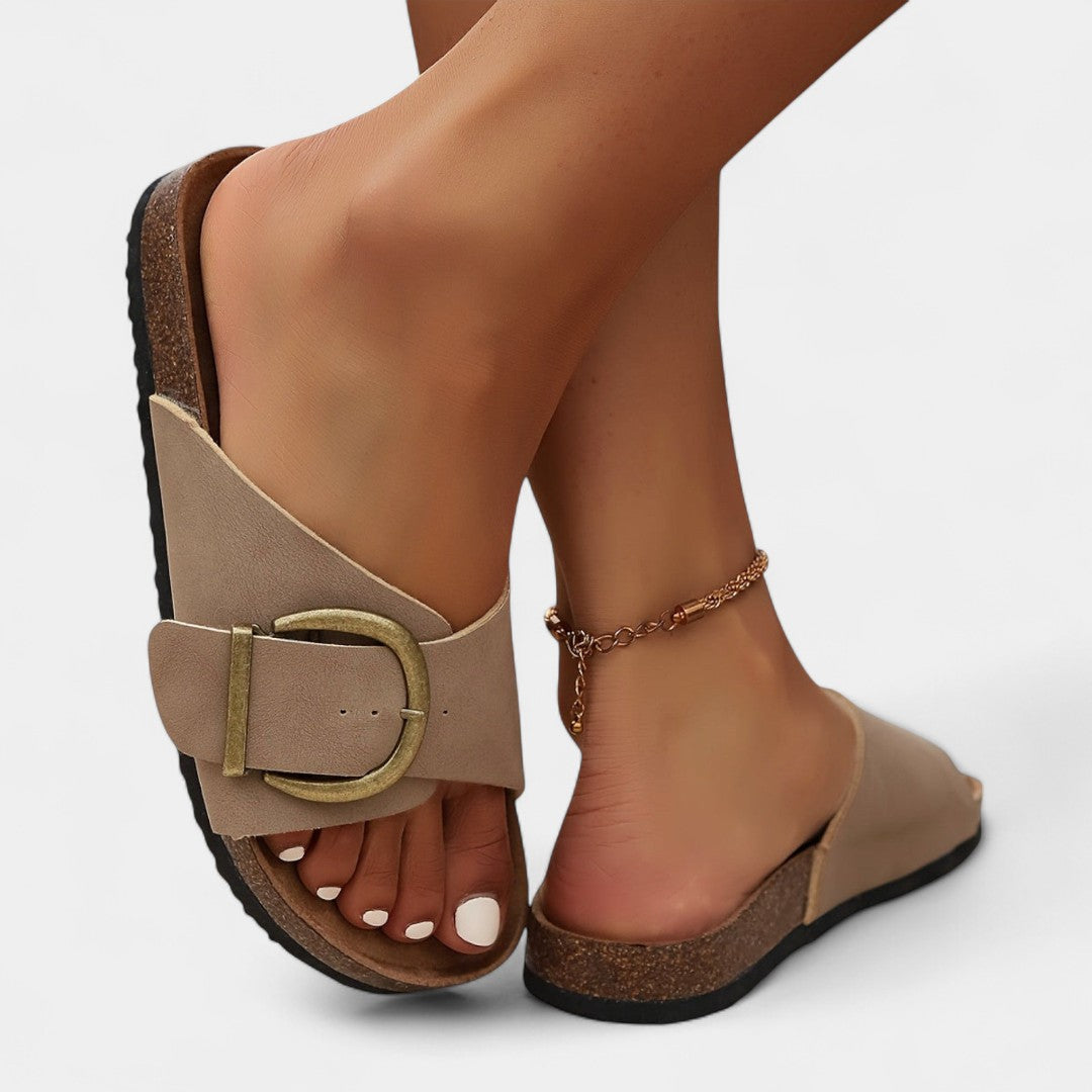 Λουκία - Στιλάτες καλοκαιρινές παντόφλες από φελλό με αγκράφες