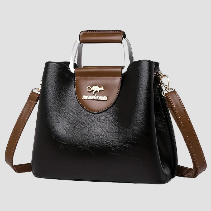 • Κομψός συνδυασμός χρωμάτων: Ο κλασικός συνδυασμός μαύρου και καφέ προσφέρει εξαιρετική ευελιξία, διασφαλίζοντας ότι η τσάντα συμπληρώνει σχεδόν κάθε ντύσιμο στην γκαρνταρόμπα σας.