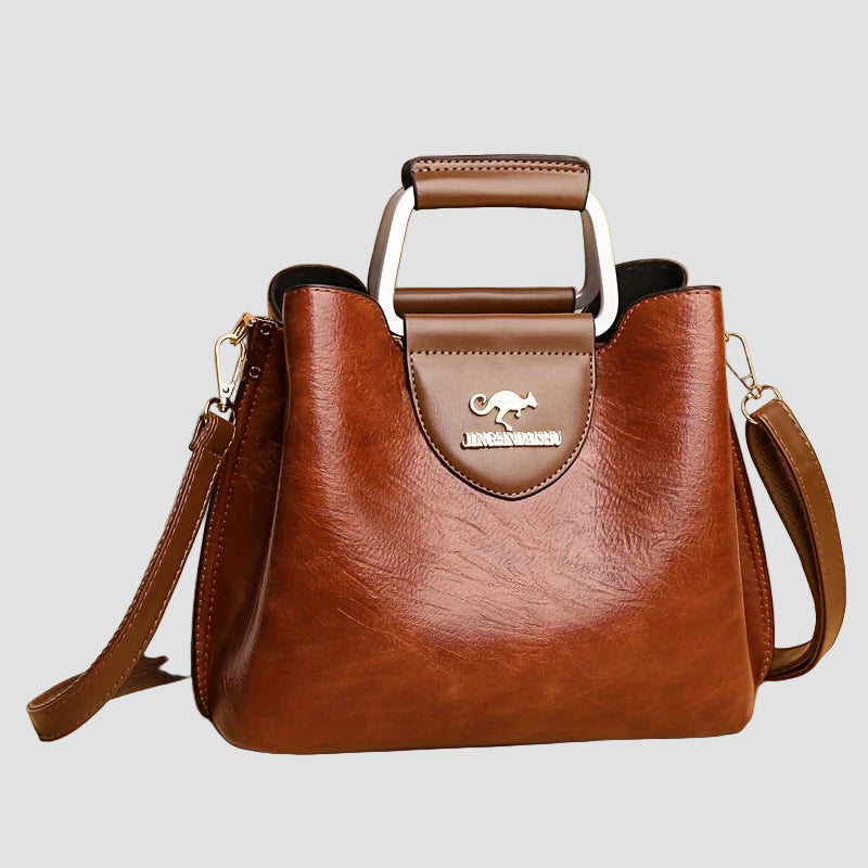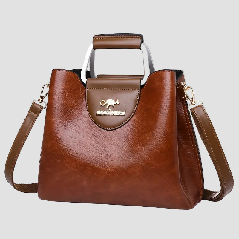 Κάντε μια εκλεπτυσμένη δήλωση με αυτήν την όμορφα σχεδιασμένη δίχρωμη τσάντα satchel . Το πλούσιο μαύρο σώμα έρχεται σε έντονη αντίθεση με τις καφέ πινελιές στις λαβές και το λουράκι ώμου, δημιουργώντας ένα οπτικά εντυπωσιακό και ευέλικτο αξεσουάρ. Η δομημένη σιλουέτα της τσάντας διατηρεί το κομψό της σχήμα είτε είναι γεμάτη είτε άδεια, προσφέροντας μια επαγγελματική πινελιά, ιδανική για το γραφείο ή για πολυτελείς εκδηλώσεις. Προσεγμένες λεπτομέρειες, όπως οι μοναδικές ασημένιες μεταλλικές λαβές σε σχήμα δακτυλίου και το χαρακτηριστικό έμβλημα του καγκουρό, προσθέτουν μια πινελιά ξεχωριστής πινελιάς. Με τις πολλαπλές επιλογές μεταφοράς της - από τις επάνω λαβές ή το ρυθμιζόμενο λουράκι ώμου - αυτή η τσάντα προσαρμόζεται εύκολα σε κάθε σας ανάγκη, διατηρώντας παράλληλα αναμφισβήτητη κομψότητα.